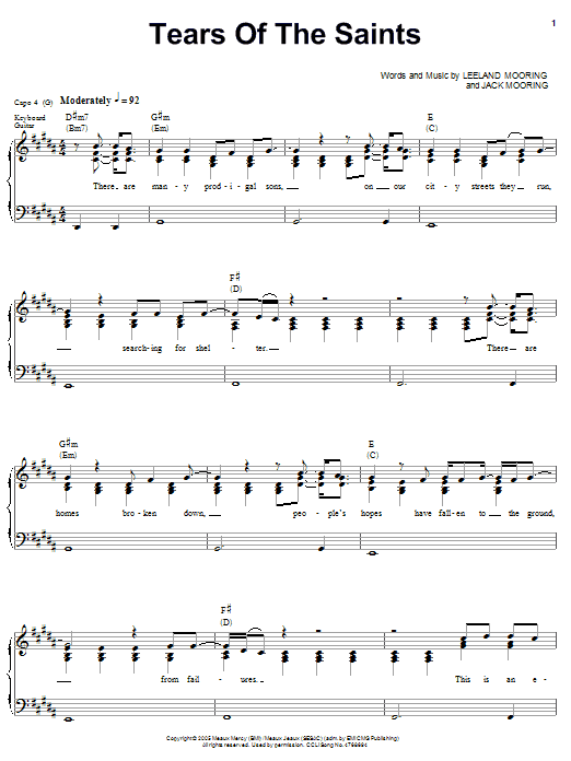 Download or print Leeland Tears Of The Saints sheet music, chords and digital score arranged for Piano, Vocal & Guitar Chords (Right-Hand Melody). This Pop score includes 8 page(s).