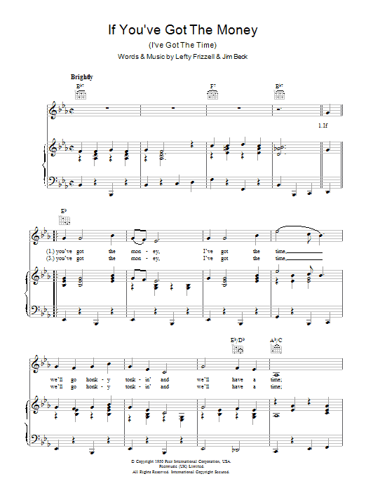 Download or print Lefty Frizzell If You've Got The Money (I've Got The Time) sheet music, chords and digital score arranged for Lead Sheet / Fake Book. This Country score includes 2 page(s).