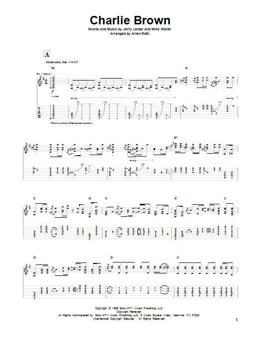 Download or print Leiber & Stoller Charlie Brown sheet music, chords and digital score arranged for Solo Guitar. This Oldies score includes 6 page(s).