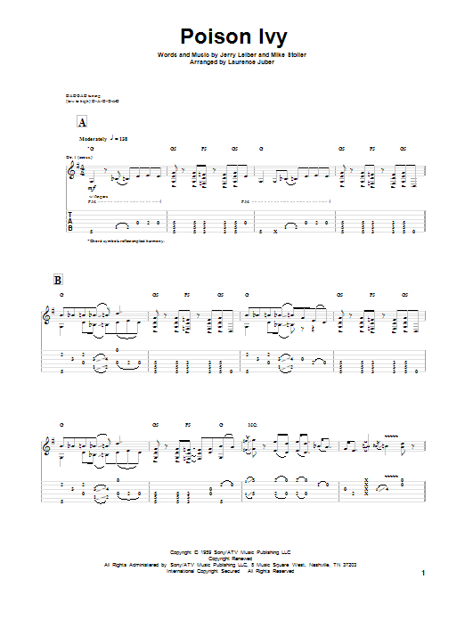 Download or print Leiber & Stoller Poison Ivy sheet music, chords and digital score arranged for Solo Guitar. This Pop score includes 5 page(s).