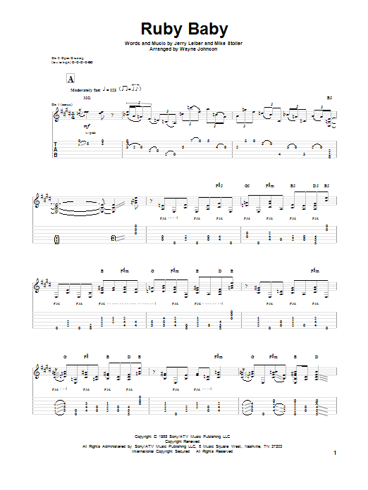 Download or print Leiber & Stoller Ruby Baby sheet music, chords and digital score arranged for Solo Guitar. This Pop score includes 9 page(s).