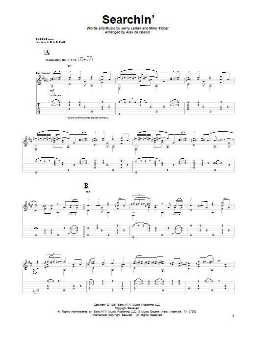 Download or print Leiber & Stoller Searchin' sheet music, chords and digital score arranged for Solo Guitar. This Pop score includes 6 page(s).