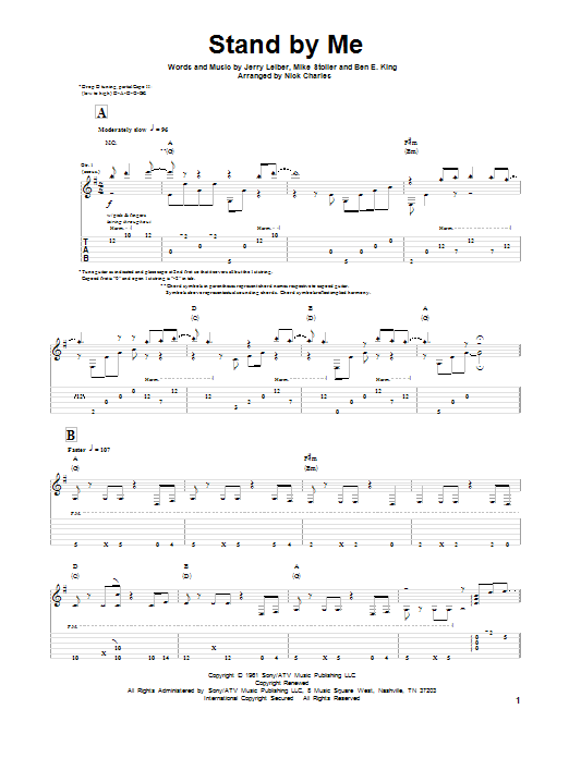Download or print Leiber & Stoller Stand By Me sheet music, chords and digital score arranged for Solo Guitar. This Oldies score includes 5 page(s).