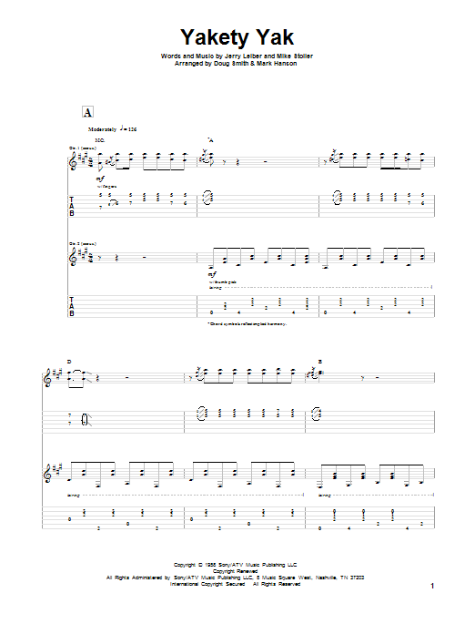 Download or print Leiber & Stoller Yakety Yak sheet music, chords and digital score arranged for Solo Guitar. This Pop score includes 12 page(s).