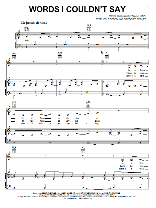 Download or print Leighton Meester Words I Couldn't Say sheet music, chords and digital score arranged for Piano, Vocal & Guitar Chords (Right-Hand Melody). This Country score includes 8 page(s).