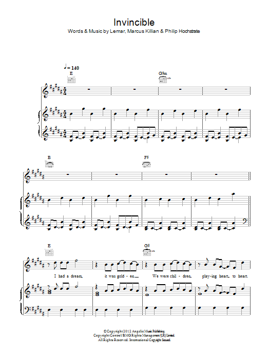 Download or print Lemar Invincible sheet music, chords and digital score arranged for Piano, Vocal & Guitar Chords. This Pop score includes 6 page(s).