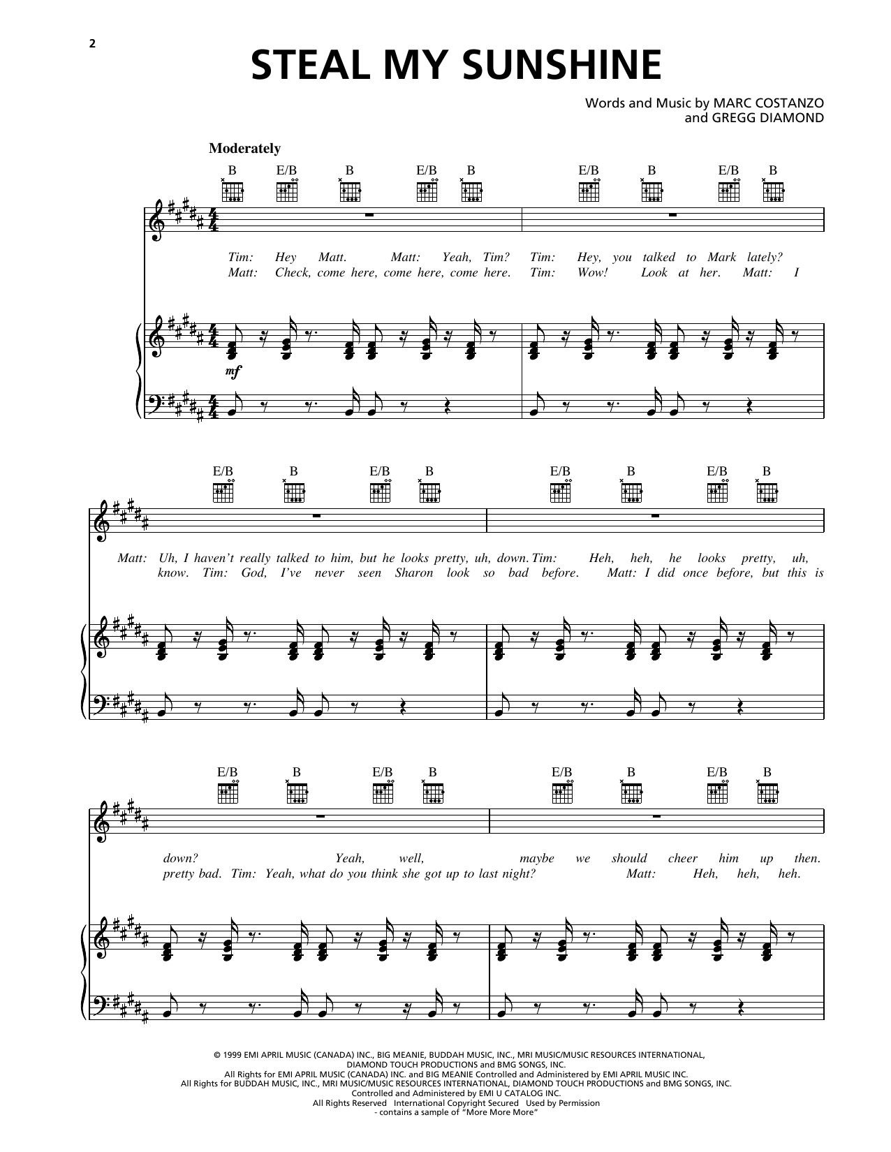 Download or print Len Steal My Sunshine sheet music, chords and digital score arranged for Piano, Vocal & Guitar Chords (Right-Hand Melody). This Pop score includes 6 page(s).