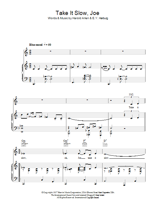 Download or print Lena Horne Take It Slow, Joe sheet music, chords and digital score arranged for Piano, Vocal & Guitar Chords. This Jazz score includes 4 page(s).