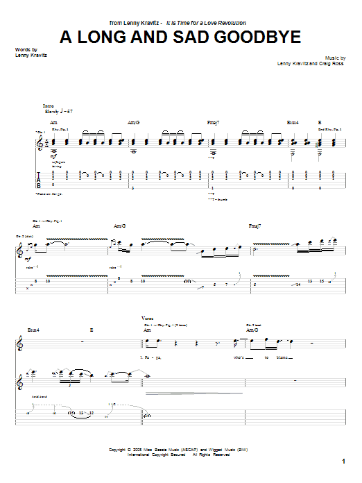 Download or print Lenny Kravitz A Long And Sad Goodbye sheet music, chords and digital score arranged for Guitar Tab. This Pop score includes 8 page(s).