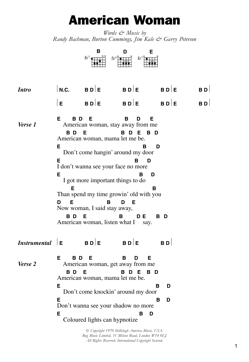 Quick facts American Woman about digital sheet music