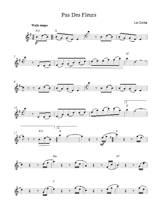 Download or print Leo Delibes Pas Des Fleurs sheet music, chords and digital score arranged for Lead Sheet / Fake Book. This Classical score includes 2 page(s).