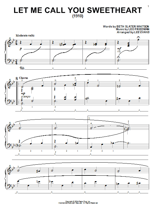 Quick facts Let Me Call You Sweetheart about digital sheet music