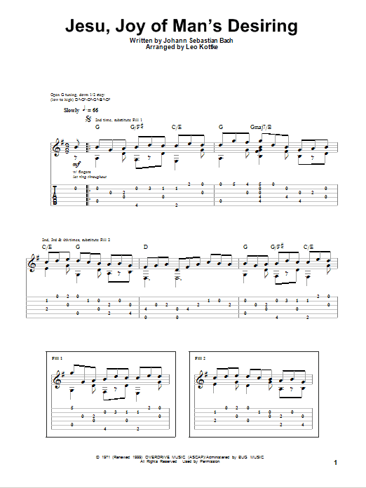 Download or print Leo Kottke Jesu, Joy Of Man's Desiring sheet music, chords and digital score arranged for Guitar Tab (Single Guitar). This Children score includes 3 page(s).