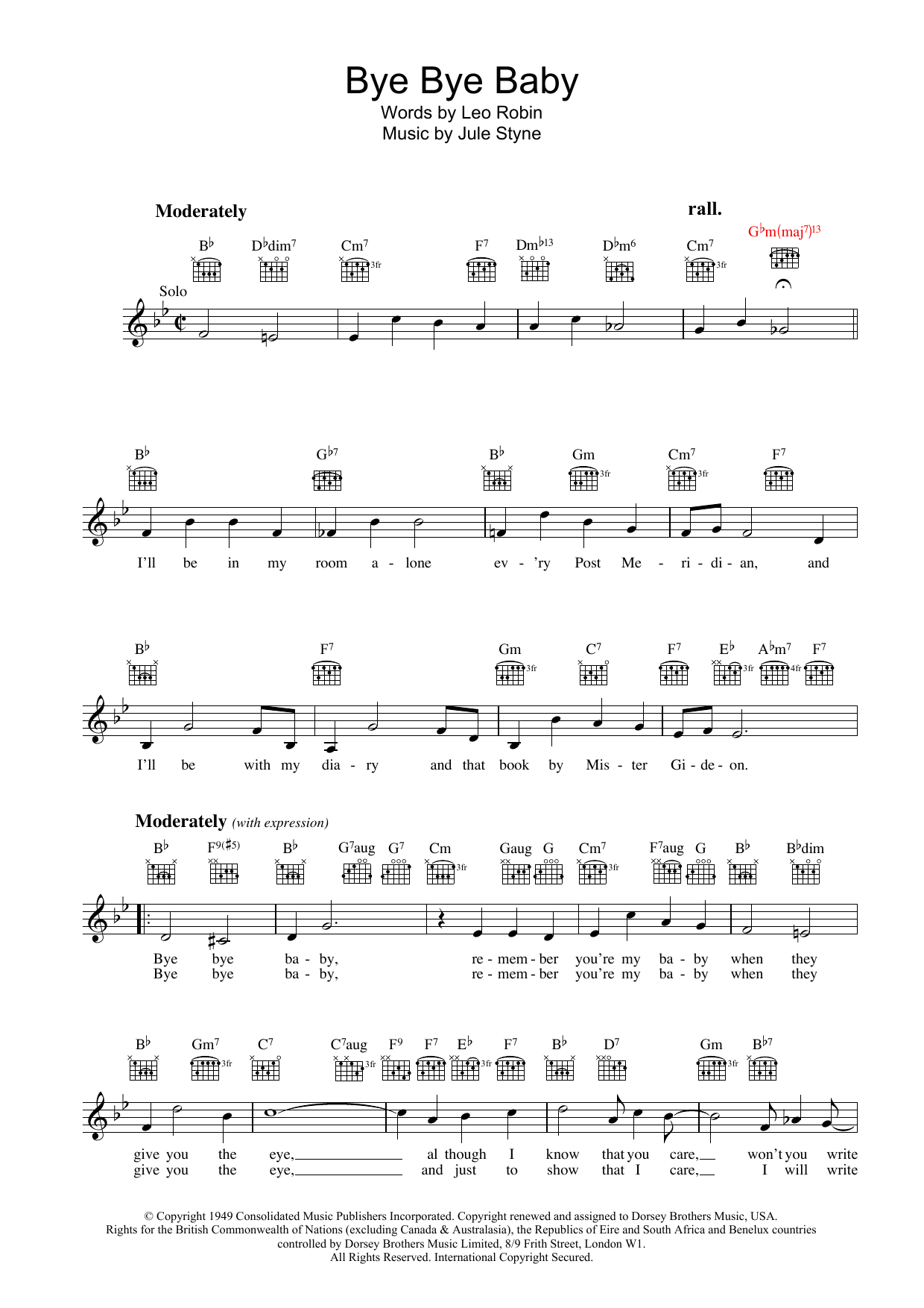 Download or print Leo Robin Bye Bye Baby sheet music, chords and digital score arranged for Lead Sheet / Fake Book. This Pop score includes 2 page(s).
