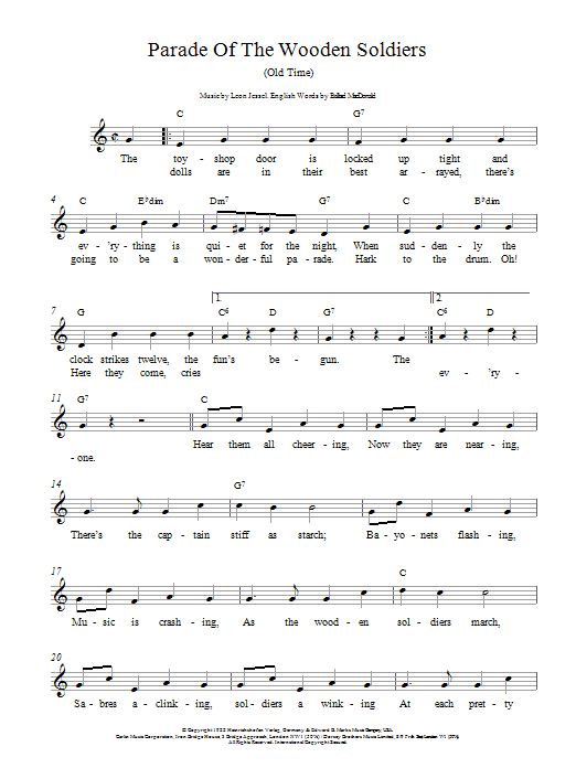 Download or print Leon Jessel Parade Of The Wooden Soldiers sheet music, chords and digital score arranged for Lead Sheet / Fake Book. This Classical score includes 2 page(s).
