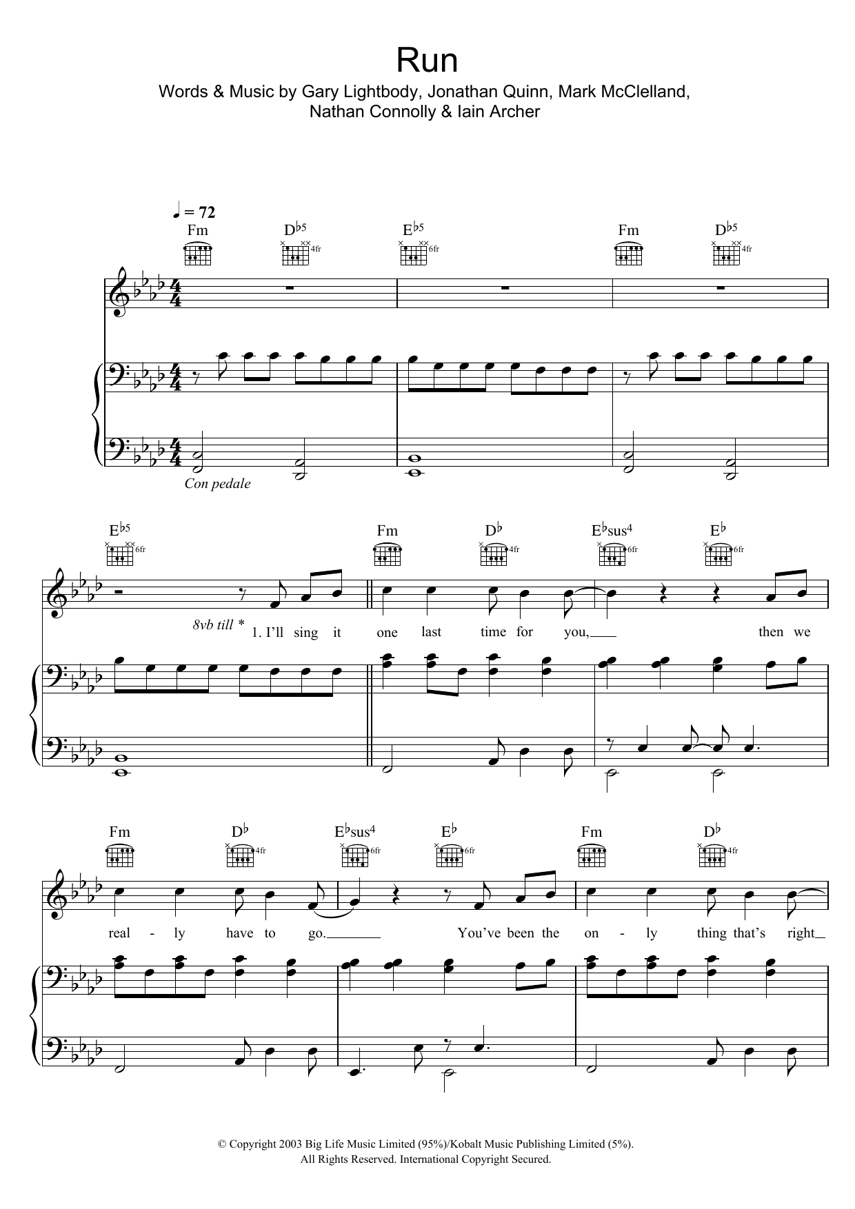 Download or print Leona Lewis Run sheet music, chords and digital score arranged for Easy Piano. This Pop score includes 6 page(s).