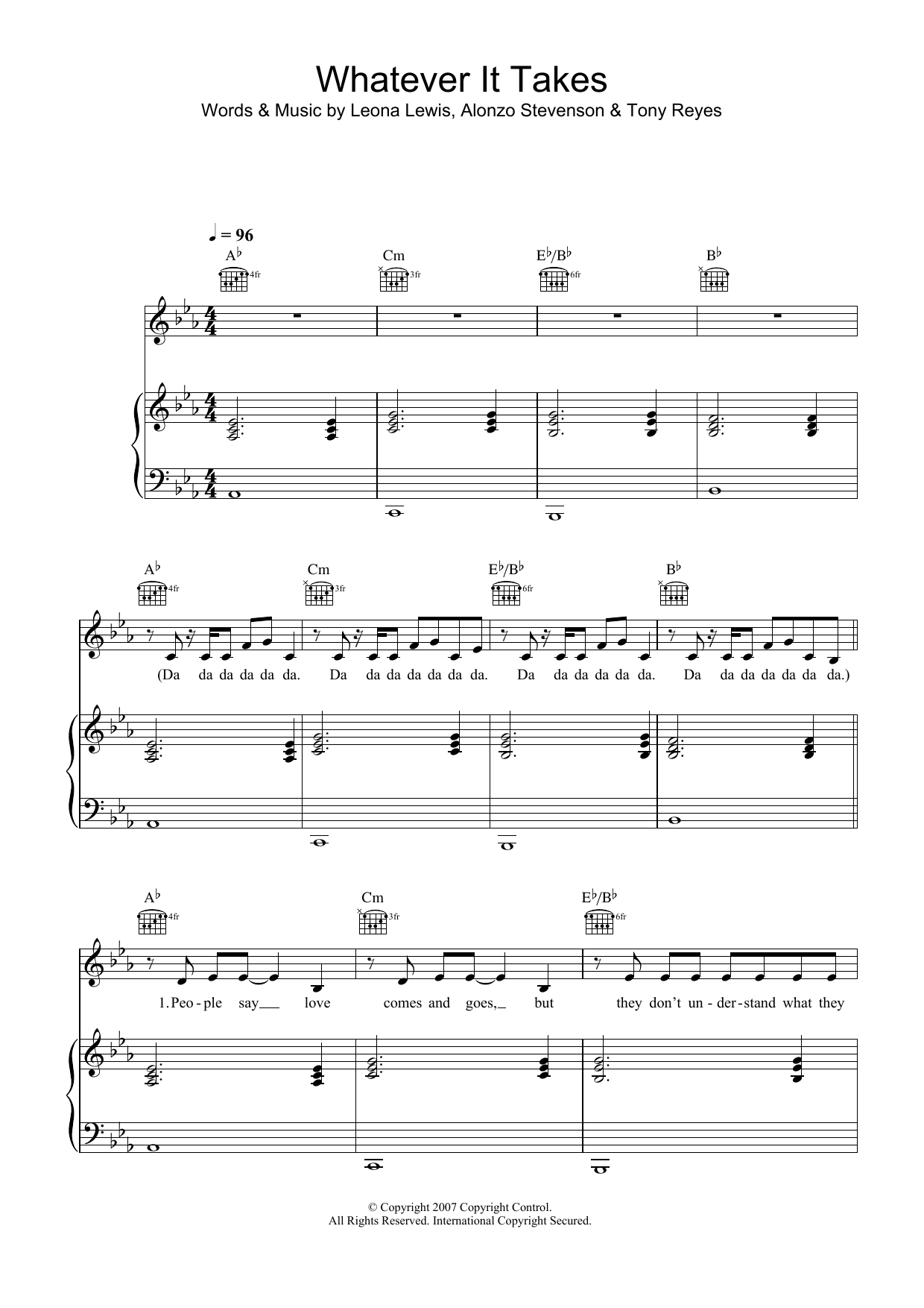 Download or print Leona Lewis Whatever It Takes sheet music, chords and digital score arranged for Piano, Vocal & Guitar Chords (Right-Hand Melody). This Pop score includes 7 page(s).