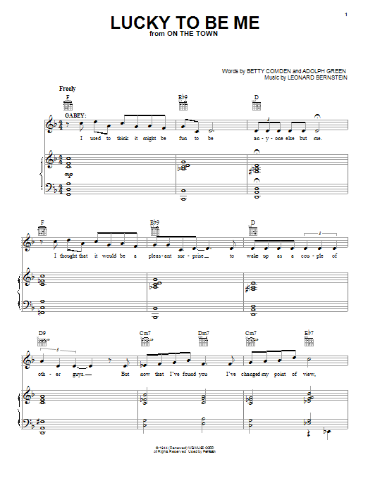 Download or print Leonard Bernstein Lucky To Be Me (from On The Town) sheet music, chords and digital score arranged for Lead Sheet / Fake Book. This Jazz score includes 1 page(s).