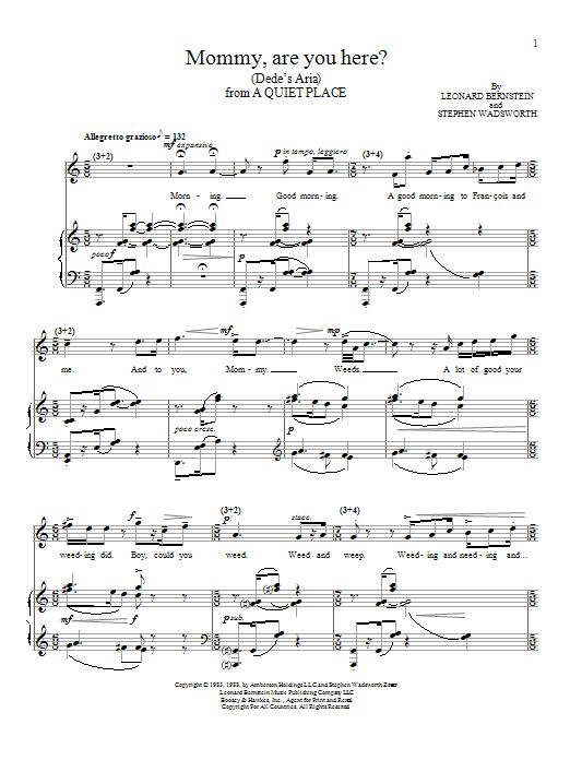 Download or print Leonard Bernstein Mommy, Are You Here (Dede's Aria) sheet music, chords and digital score arranged for Piano & Vocal. This Classical score includes 4 page(s).