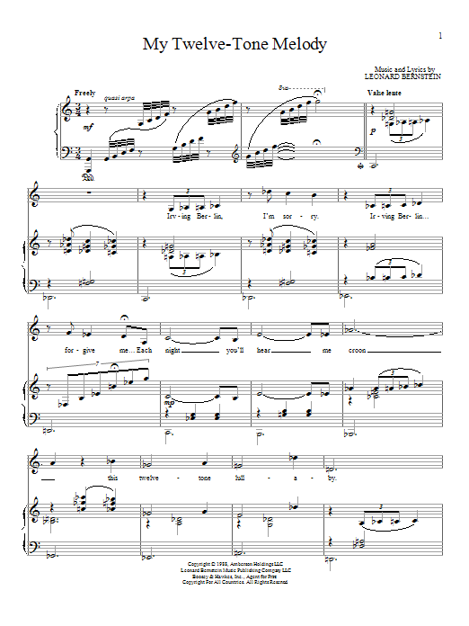 Download or print Leonard Bernstein My Twelve-Tone Melody sheet music, chords and digital score arranged for Piano & Vocal. This Classical score includes 4 page(s).