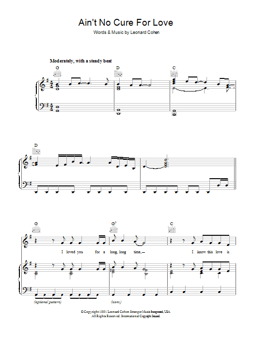 Download or print Leonard Cohen Ain't No Cure For Love sheet music, chords and digital score arranged for Piano, Vocal & Guitar Chords. This Rock score includes 10 page(s).