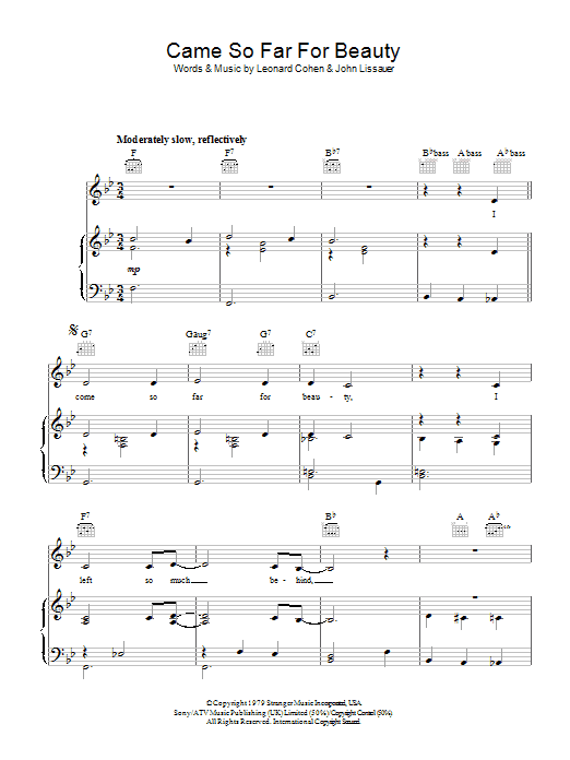 Download or print Leonard Cohen Came So Far For Beauty sheet music, chords and digital score arranged for Guitar Chords/Lyrics. This Pop score includes 2 page(s).
