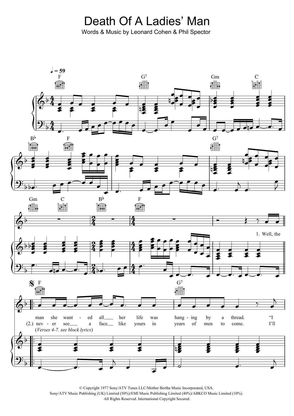 Download or print Leonard Cohen Death Of A Ladies' Man sheet music, chords and digital score arranged for Guitar Chords/Lyrics. This Folk score includes 3 page(s).