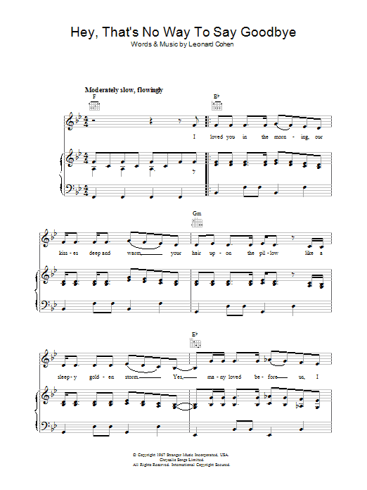 Download or print Leonard Cohen Hey, That's No Way To Say Goodbye sheet music, chords and digital score arranged for Guitar Chords/Lyrics. This Pop score includes 2 page(s).