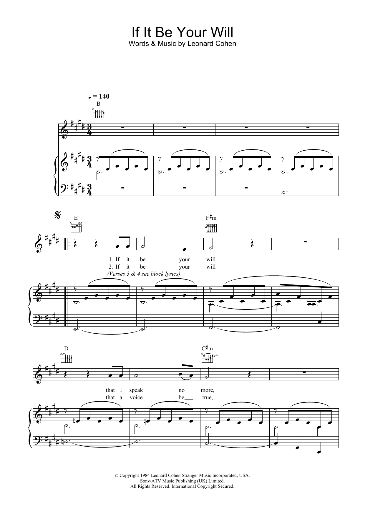 Download or print Leonard Cohen If It Be Your Will sheet music, chords and digital score arranged for Guitar Chords/Lyrics. This Rock score includes 2 page(s).