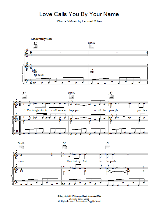Download or print Leonard Cohen Love Calls You By Your Name sheet music, chords and digital score arranged for Guitar Chords/Lyrics. This Rock score includes 3 page(s).