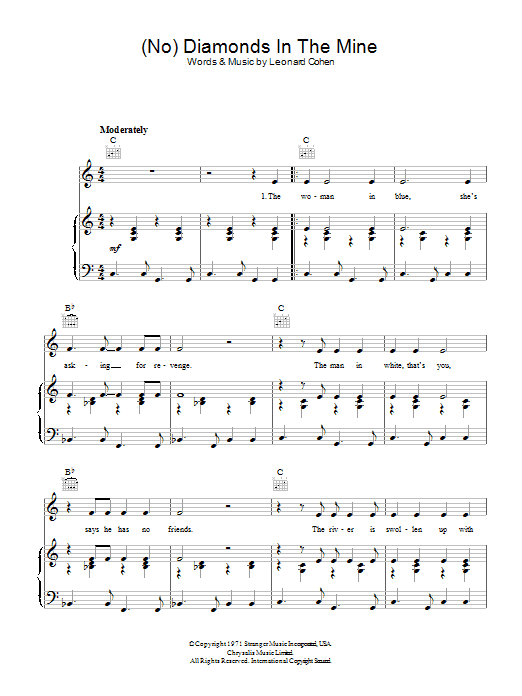 Download or print Leonard Cohen (No) Diamonds In The Mine sheet music, chords and digital score arranged for Piano, Vocal & Guitar Chords. This Rock score includes 3 page(s).