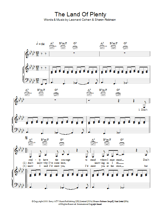 Download or print Leonard Cohen The Land Of Plenty sheet music, chords and digital score arranged for Guitar Chords/Lyrics. This Rock score includes 3 page(s).