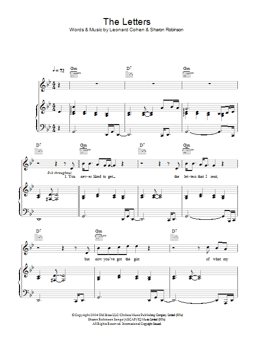 Download or print Leonard Cohen The Letters sheet music, chords and digital score arranged for Guitar Chords/Lyrics. This Rock score includes 3 page(s).