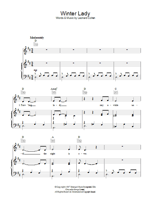 Download or print Leonard Cohen Winter Lady sheet music, chords and digital score arranged for Piano, Vocal & Guitar Chords. This Rock score includes 3 page(s).