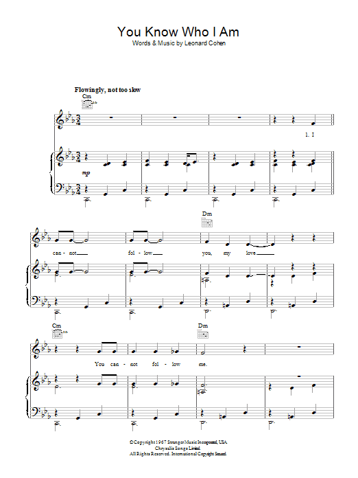 Download or print Leonard Cohen You Know Who I Am sheet music, chords and digital score arranged for Guitar Chords/Lyrics. This Rock score includes 2 page(s).