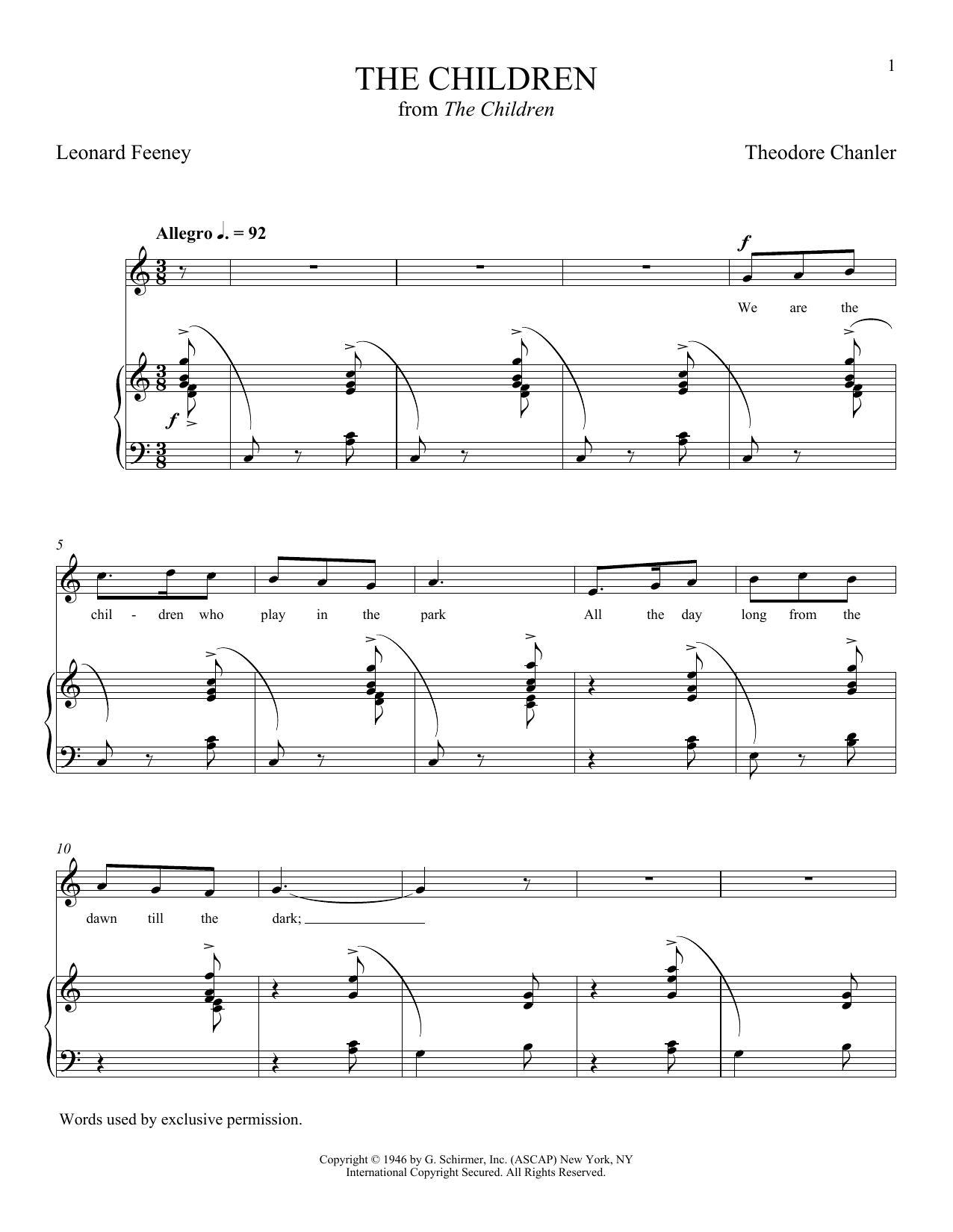 Download or print Leonard Feeney and Theodore Chanler The Children sheet music, chords and digital score arranged for Piano & Vocal. This Classical score includes 5 page(s).