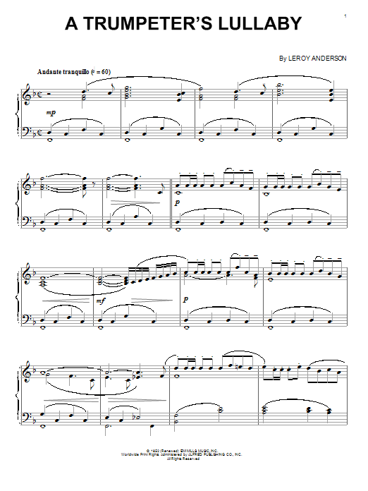 Download or print Leroy Anderson A Trumpeter's Lullaby sheet music, chords and digital score arranged for Piano Solo. This Jazz score includes 4 page(s).
