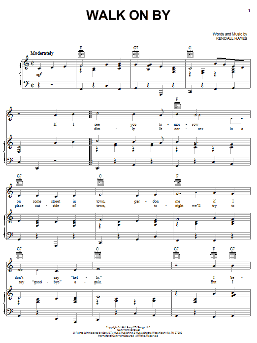 Download or print Leroy Van Dyke Walk On By sheet music, chords and digital score arranged for Piano, Vocal & Guitar Chords (Right-Hand Melody). This Country score includes 3 page(s).