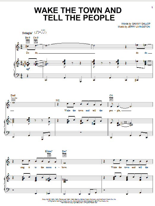 Download or print Les Baxter Wake The Town And Tell The People sheet music, chords and digital score arranged for Piano, Vocal & Guitar Chords (Right-Hand Melody). This Pop score includes 5 page(s).