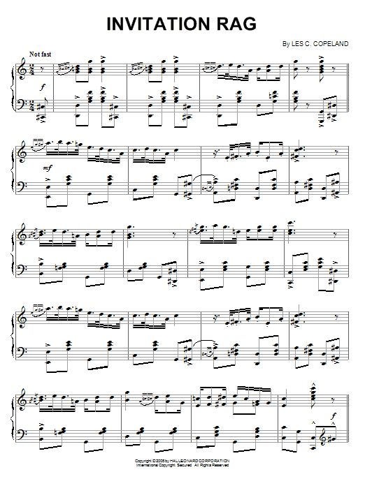 Download or print Les C. Copeland Invitation Rag sheet music, chords and digital score arranged for Piano Solo. This Jazz score includes 4 page(s).