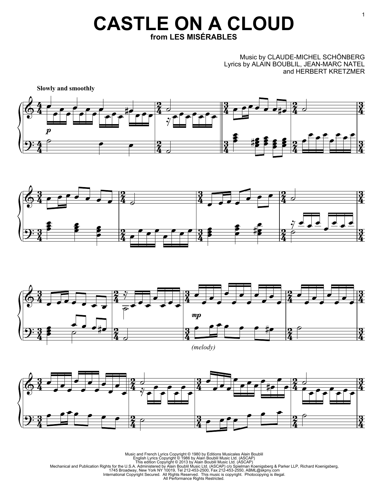 Download or print Les Miserables (Musical) Castle On A Cloud sheet music, chords and digital score arranged for Piano Solo. This Musical/Show score includes 2 page(s).