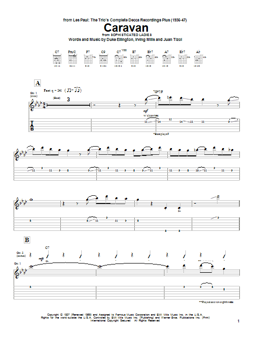 Download or print Les Paul Caravan sheet music, chords and digital score arranged for Guitar Tab. This Jazz score includes 9 page(s).
