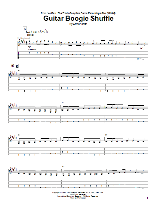 Download or print Les Paul Guitar Boogie Shuffle sheet music, chords and digital score arranged for Guitar Tab. This Oldies score includes 6 page(s).