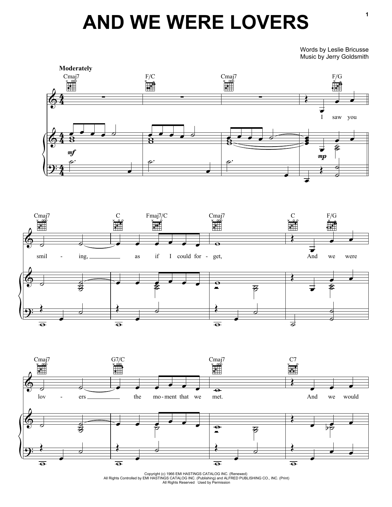Download or print Leslie Bricusse And We Were Lovers sheet music, chords and digital score arranged for Piano, Vocal & Guitar Chords (Right-Hand Melody). This Film/TV score includes 3 page(s).