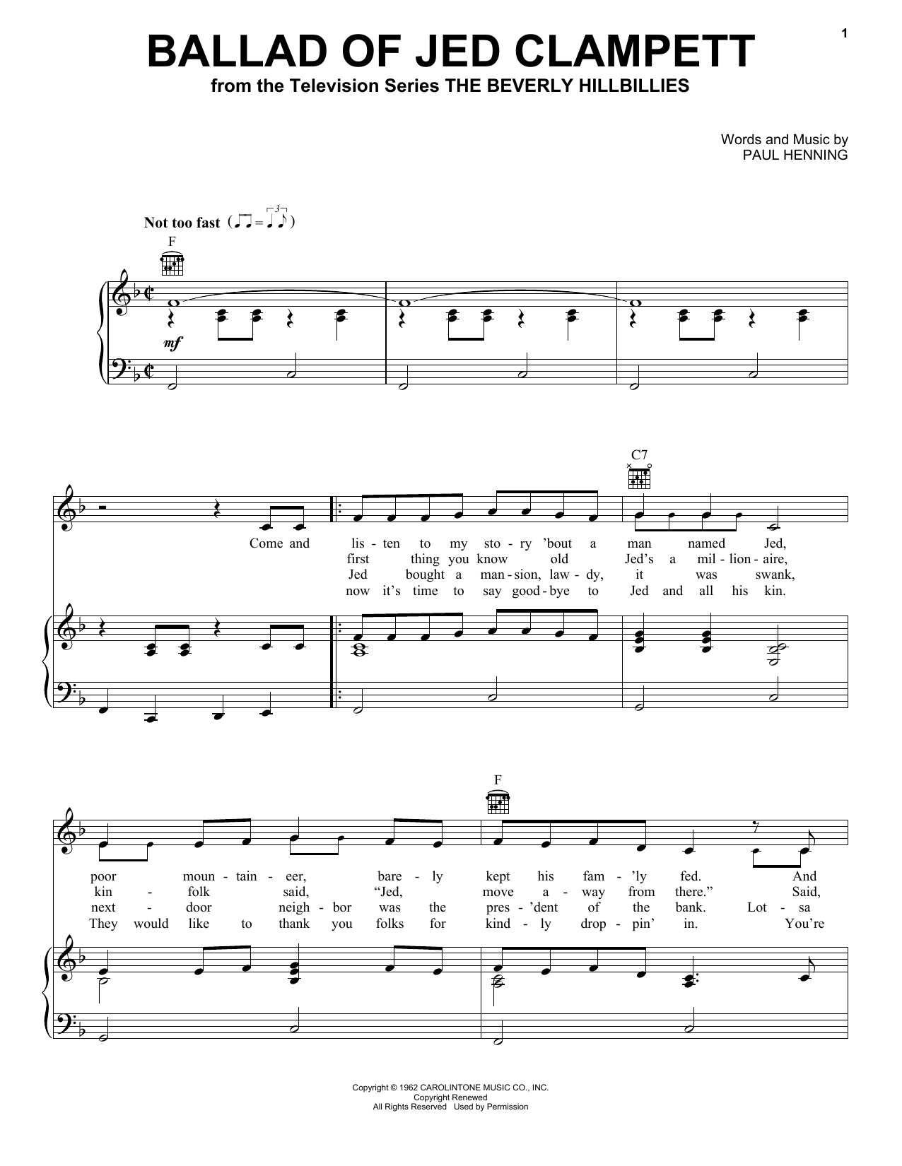 Quick facts Ballad Of Jed Clampett (from The Beverly Hillbillies) about digital sheet music