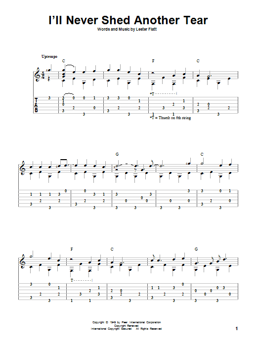 Download or print Lester Flatt I'll Never Shed Another Tear sheet music, chords and digital score arranged for Solo Guitar. This Country score includes 2 page(s).