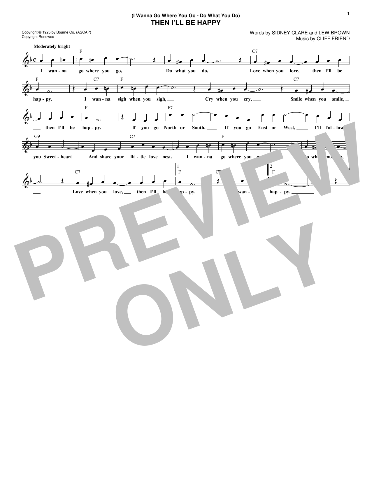 Download or print Lew Brown (I Wanna Go Where You Go - Do What You Do) Then I'll Be Happy sheet music, chords and digital score arranged for Lead Sheet / Fake Book. This Jazz score includes 1 page(s).