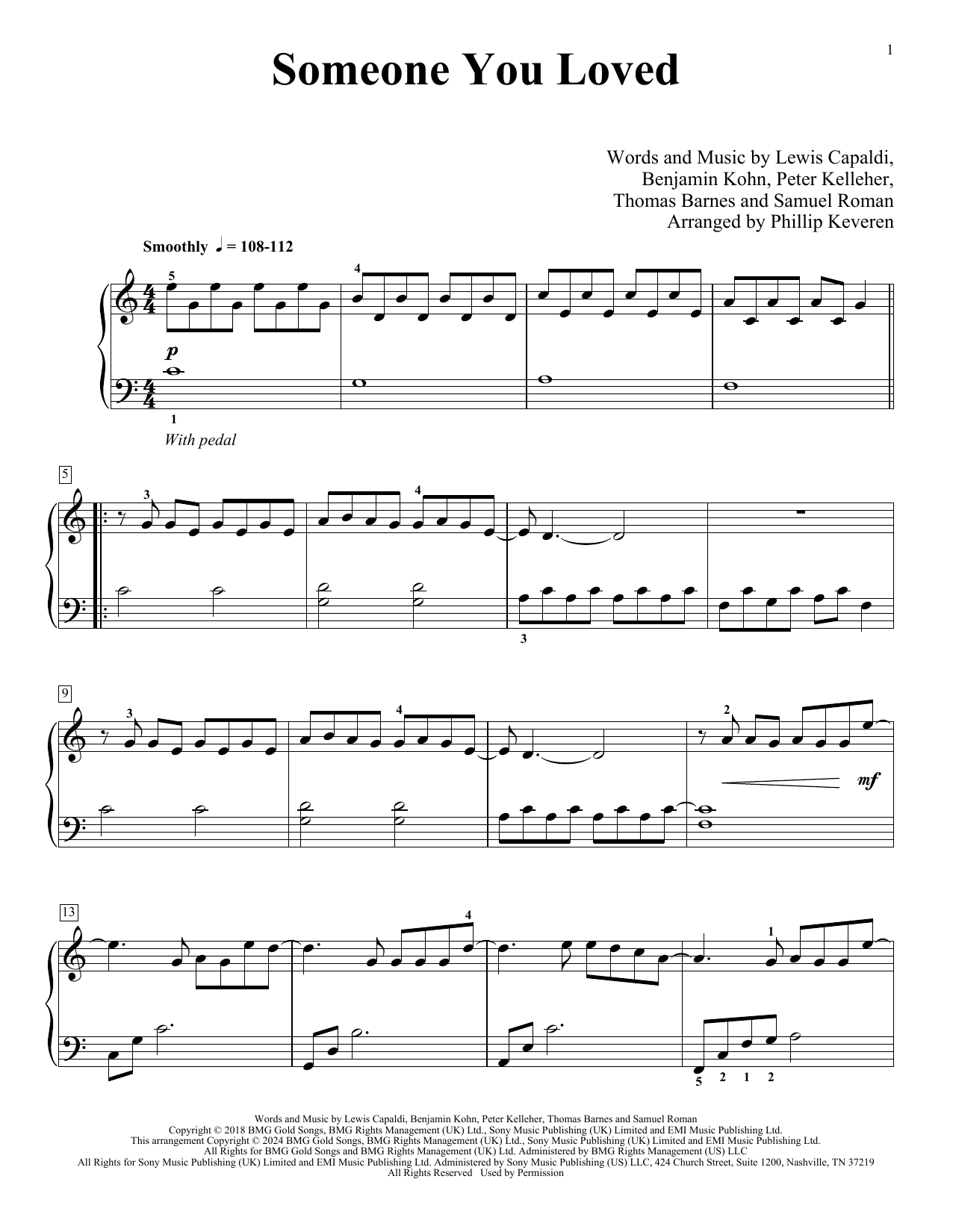 Quick facts Someone You Loved (arr. Phillip Keveren) about digital sheet music