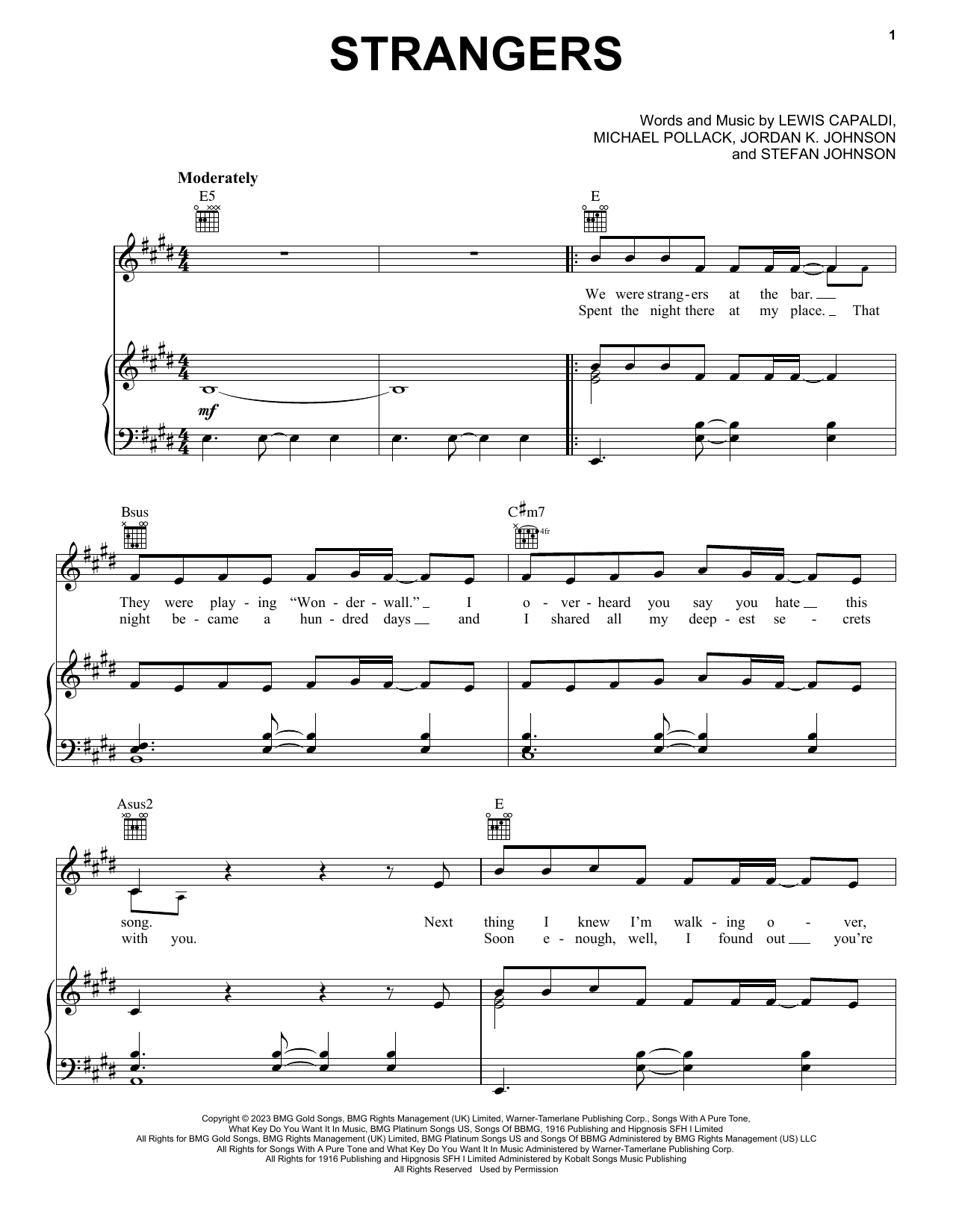 Download or print Lewis Capaldi Strangers sheet music, chords and digital score arranged for Piano, Vocal & Guitar Chords (Right-Hand Melody). This Pop score includes 8 page(s).