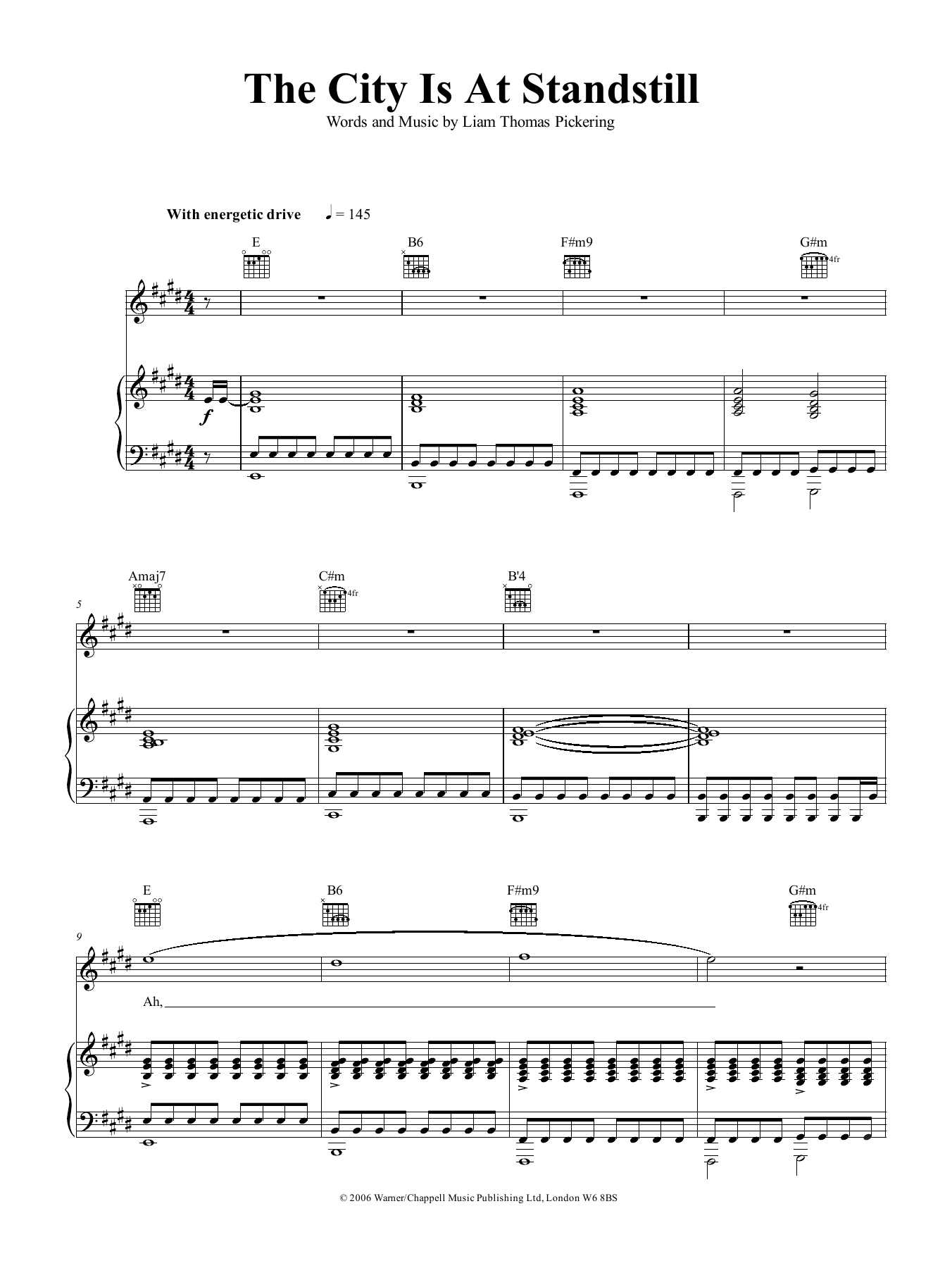 Download or print Liam Frost & The Slowdown Family The City Is At A Standstill sheet music, chords and digital score arranged for Piano, Vocal & Guitar Chords (Right-Hand Melody). This Pop score includes 8 page(s).